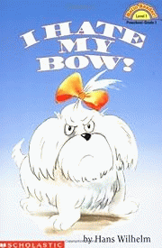 A little dog laments the fact that the other dogs won't play with him as long as he has a bath, a bow, and a chain.