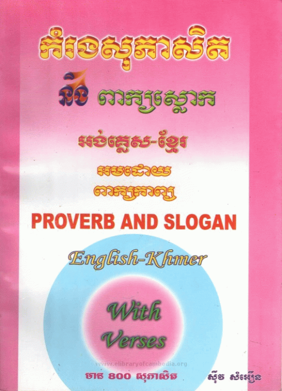 កំរងសុភាសិតនិងពាក្យស្លោក អង់គ្លេស-ខ្មែរ អមដោយពាក្យកាព្យ : Proverb and slogan English-Khmer with verses / ដោយ សុីវ សំអឿន